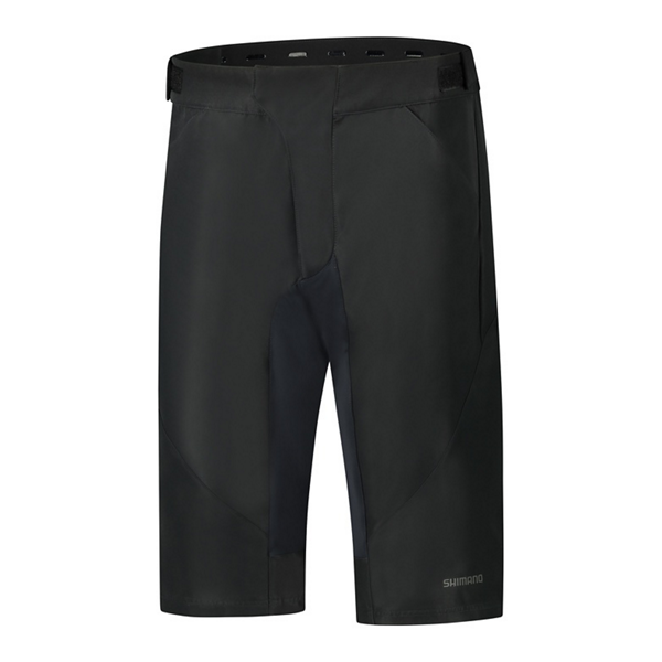 Męskie spodenki rowerowe Shimano Kuro. Przeznaczone do jazdy MTB. Posiadają luźny krój i nie mają wkładki, dzięki czemu gwarantują swobodę ruchów. Spodenki zapinane są na guzik i zamek błyskawiczny. Wyposażone w elastyczny ściągacz w pasie oraz paski z rzepami na biodrach, które zadbają o doskonałe dopasowanie. Ponad to dwie boczne kieszenie i jedna bezpieczna na zamek umożliwią przechowywanie potrzebnych podczas jazdy rzeczy. O bezpieczeństwo podczas jazdy po zmroku zadbają odblaskowe elementy.